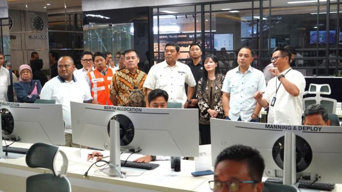 Dalam kunjungan tersebut, Wali Kota Surabaya meninjau secara langsung operasional Integrated Planning and Control Room, yang berfungsi sebagai pusat perencanaan dan pengendalian aktivitas terminal berbasis sistem digital dan real-time.